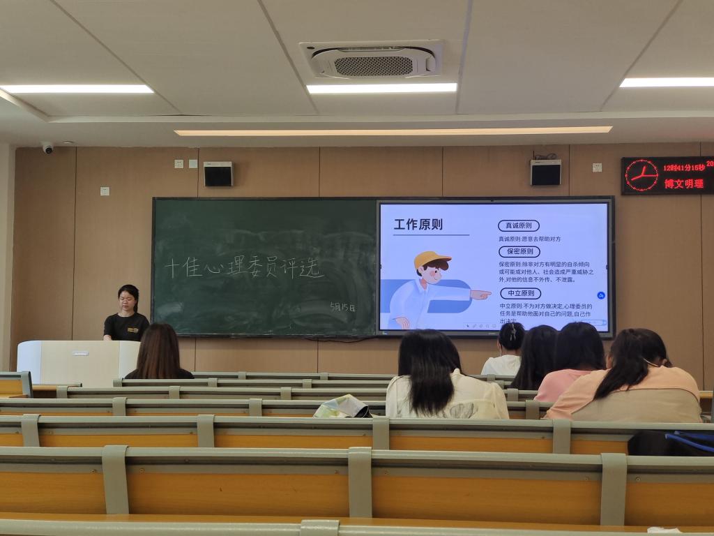 在初赛过程中,12位心理委员阐述汇报了自己对心理委员工作职责的理解、班级心理工作的开展情况及心得体会。最终,来自商务5201班袁偲仪和商务5211班亢梦姣得分最高,由此代表公司参与“十佳心理委员”决赛。决赛将于5月18日晚举行,希望她们能取得好成绩!