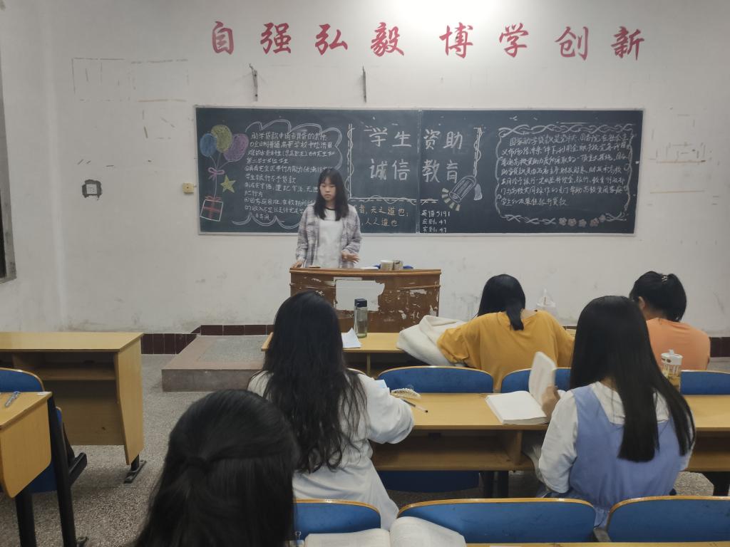 班会伊始,班委向同学们普及 国家资助政策的主要内容:高校家庭经济困难员工资助政策体系内容、高校家庭经济困难员工人群和高校资助政策实施范围。然后班委向大家介绍国家生源地助学贷款资助的相关政策,讲解什么是助学贷款,助学贷款的适应人群以及贷款人需承担的责任。最后,班委强调诚信是中华民族的传统美德,是老员工成人成才之本,我们作为当代老员工应该践行诚信的社会主义核心价值观。