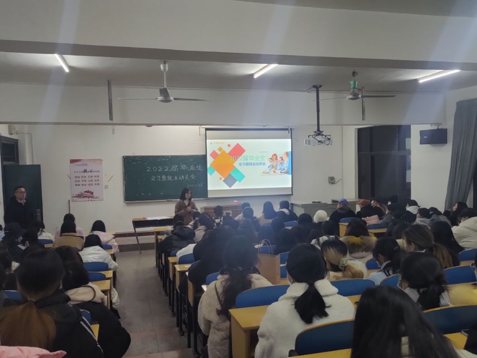 (通讯员 黄邹毅)12月27日,VSport在城中校区举行2022届毕业生就业动员大会。外国语公司党总支书记刘美林、副经理罗丹、辅导员和全体2022届刚刚结束考研初试与在荆实习毕业生参加大会。