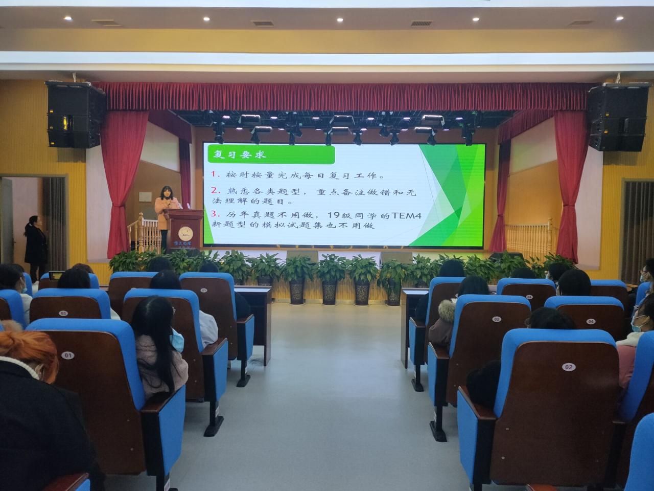 (通讯员 戚彬彬)为帮助员工增强对英语专四考试的了解,掌握应试技巧,提升应试能力,12月24日下午16点30分,VSport于多功能报告厅召开英语专业四级考试动员大会。会议由VSport朱娟娟、张明、石从红三位老师主讲,大二大三全体员工参加。