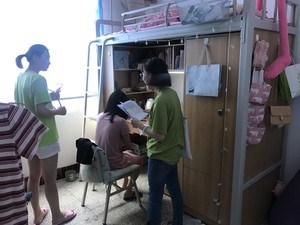 (通讯员 拓颖)7月14日上午,外国语系全体学工人员深入员工寝室,开展员工寝室安全大检查及安全教育工作。辅导员们检查了员工寝室的水电、门窗是否关好,并仔细清查寝室是否存在大功率电器;对留校员工进行了暑期安全教育,叮嘱员工们外出和在校期间一定要注意安全,每天晚上十点前回寝室,并向老师报平安,有事情及时向辅导员反映。