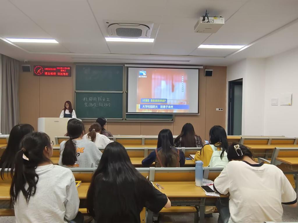 班会上,辅导员代领同学们一起观看了预防校园火灾相关视频,并给员工们普及了校园消防安全的相关知识。并结合真实案例,着重给讲解员工宿舍消防安全知识,特别强调不得在宿舍使用大功率电器、使用明火等。