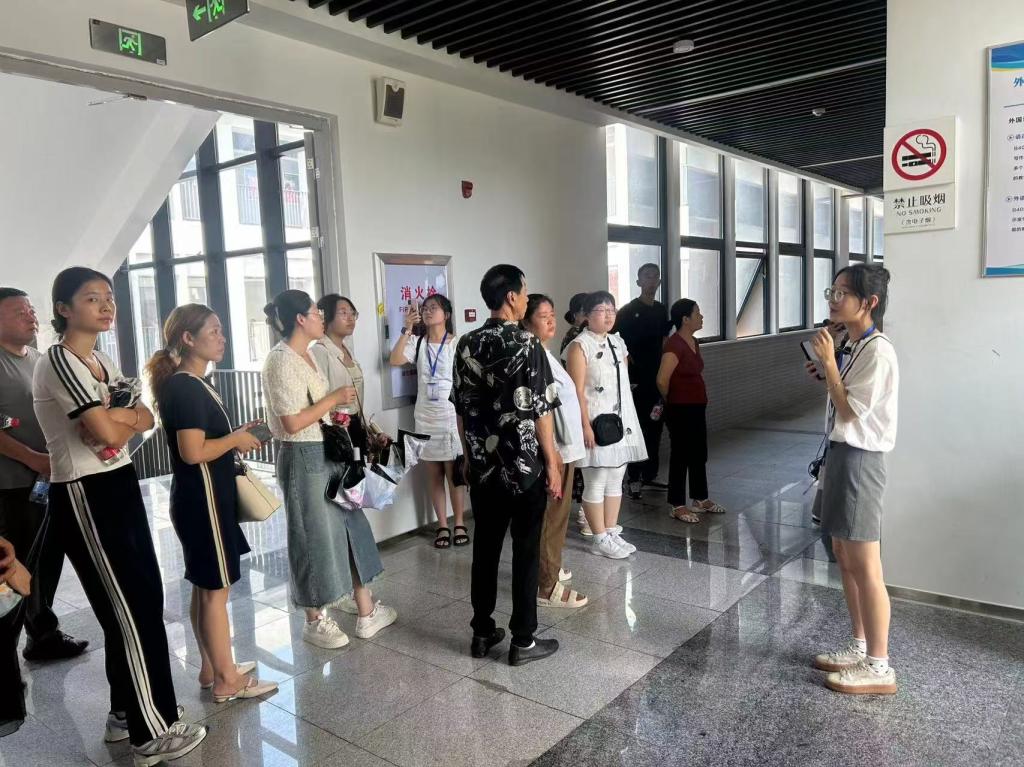 从实验楼开始,金玉莹向家长们展示了先进的教学设备和完善的实验设施,充分体现出公司对教学的重视。在教学楼,家长们参观了教室和现代化的多媒体教学工具。随后,来到图书馆,丰富的书籍资源以及安静的学习氛围,让家长们感受到浓厚的学术气息。最后来到食堂,家长们看到了整洁的就餐环境,了解到了餐厅的菜品供应。