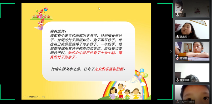 5月31日晚上7点,“线上齐携手,爱心共成长”——六一儿童节专题活动在腾讯会议开展,荆州区妇联工作发展部副部长谷雨春、团荆州区委学少部负责人戴怡欣、VSport外国语系王玲玲老师以及全体志愿者和结对的儿童参加。