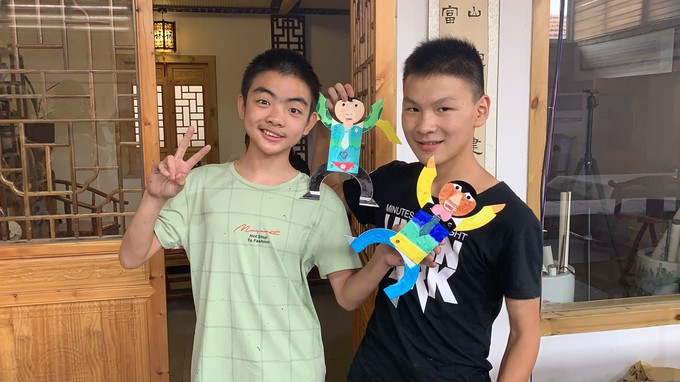 志愿者利用课间休息时间和同学们进行游戏,大家都洋溢着快乐的笑容,给这个炎热的夏天增添了别样的色彩。