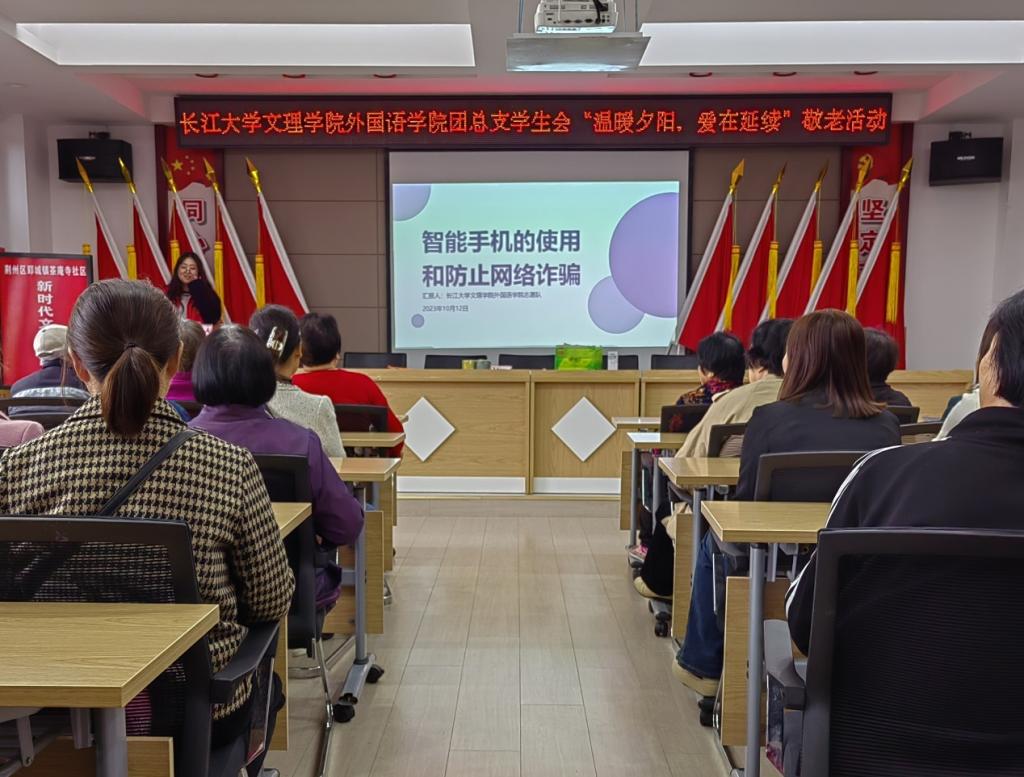 九点活动准时开始,主持人以“智能手机的使用和防止网络诈骗”为题,聚焦于老人对智能手机使用的需求,有效提高了老人们的防诈骗意识和反诈骗能力。讲解结束后还开展了训练反应的互动游戏,老人们也积极参与,现场气氛活跃。最后,志愿者为前来参加活动的老人发放奖品。