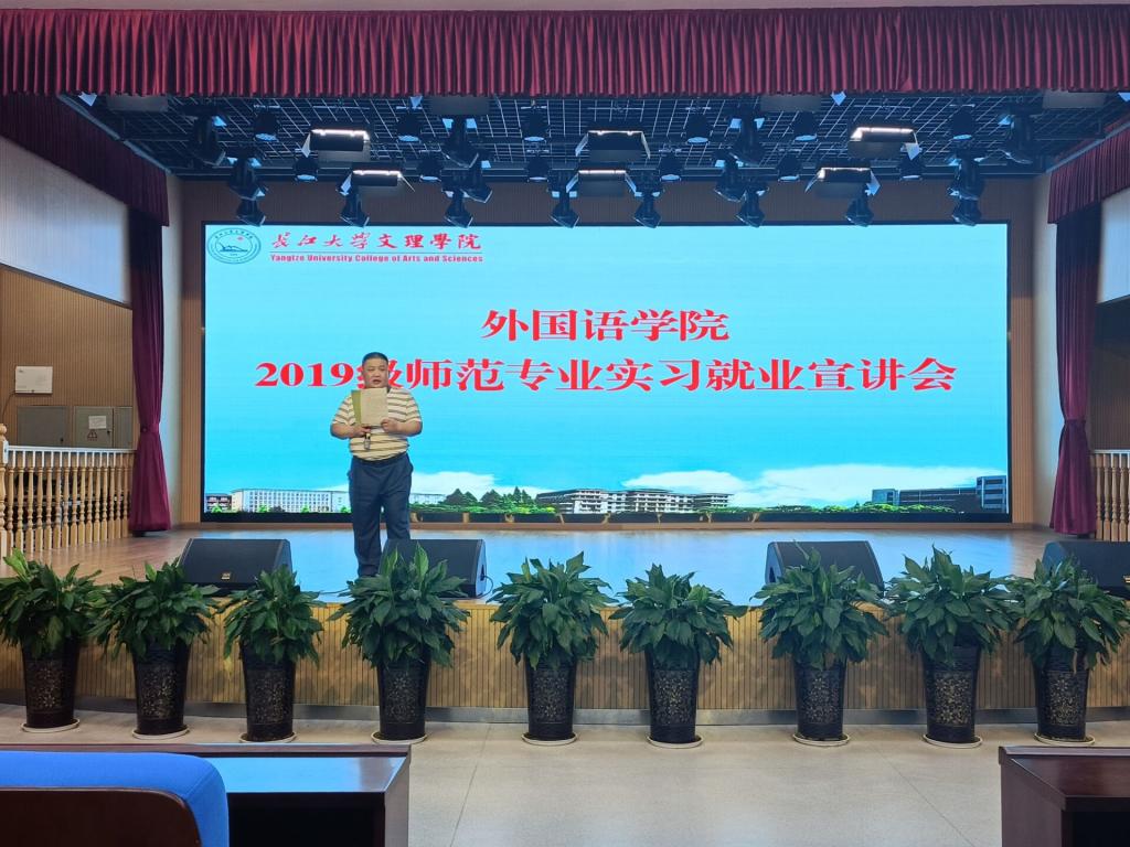 (通讯员 沈敏) 5月23日晚,广州广畅教育科技有限公司董事长褚继红来公司开展2019级师范专业实习就业宣讲会。外国语公司党总支书记刘美林、副经理罗丹、辅导员出席,2019级员工参加本次宣讲会。