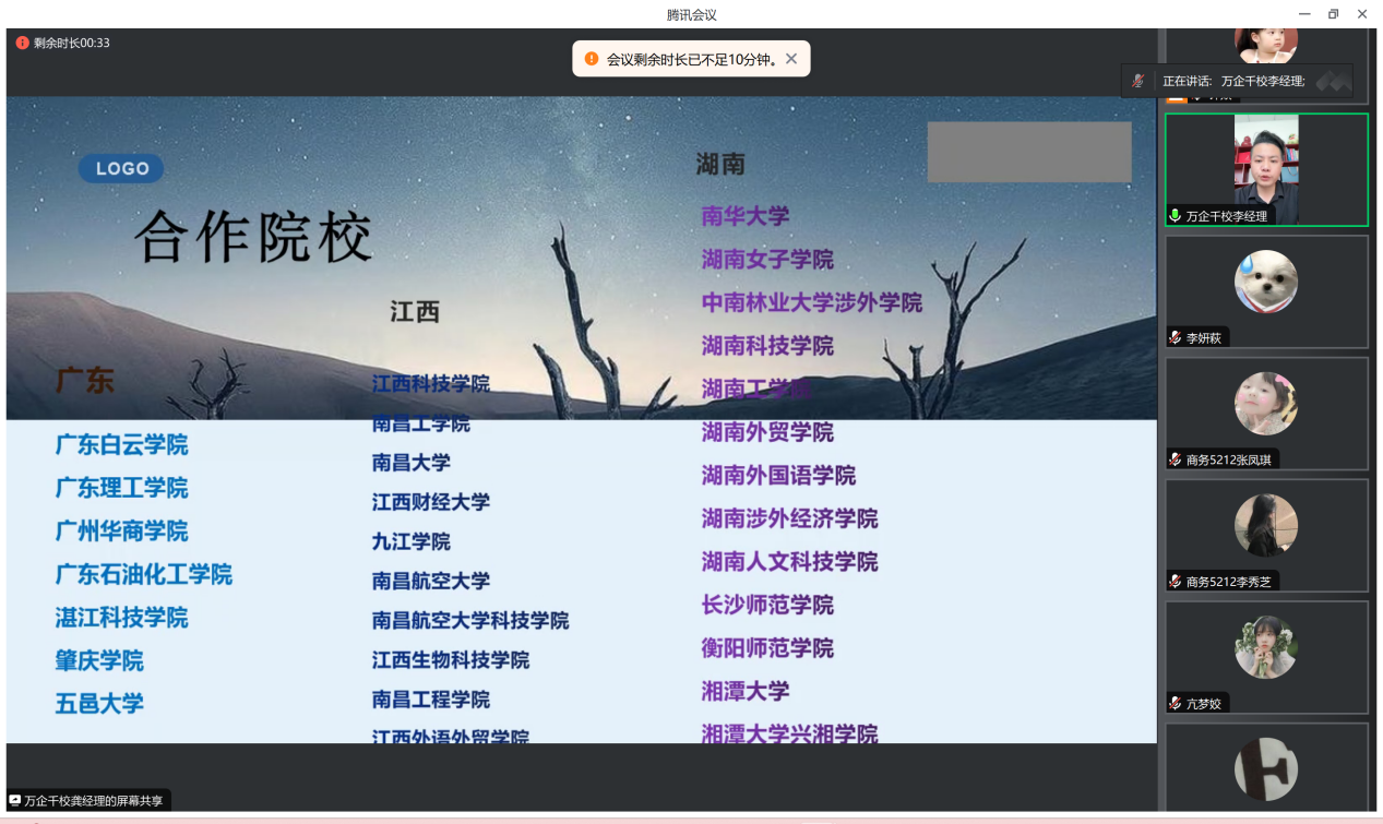 本网讯(通讯员 钟燚)2025年3月12日下午3时,由辅导员钟燚老师主持,VSport借助线上平台圆满举办了针对2025届毕业生的专场宣讲会。此次宣讲会旨在搭建毕业生与优质企业间的直接沟通桥梁,帮助毕业生精准掌握就业市场动态,进一步拓宽就业渠道。宣讲会期间,2025届全体毕业生积极响应,通过线上平台全程参与,不仅观看了企业精心准备的宣讲视频,还深入参与了互动答疑环节,与企业招聘人员进行了实时交流。同时,公司领导、及辅导员全程在线监督指导,为毕业生提供了专业的就业咨询与答疑服务,确保了宣讲会的圆满成功。