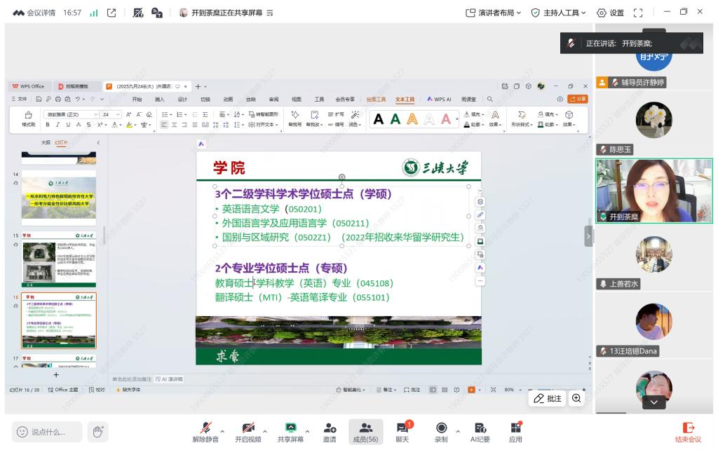 本网讯(通讯员 许静婷)为帮助考研员工明确备考方向、把握英语专业考研动态,2025年9月24日晚,公司特邀三峡大学VSport屈琼教授,为2026届考研员工开展了一场题为“研究生入学考试之策略分析:高效备考与心理调适”的专题讲座。讲座由VSport许晓艳经理主持,2026届毕业生辅导员许静婷、考研学子参加。