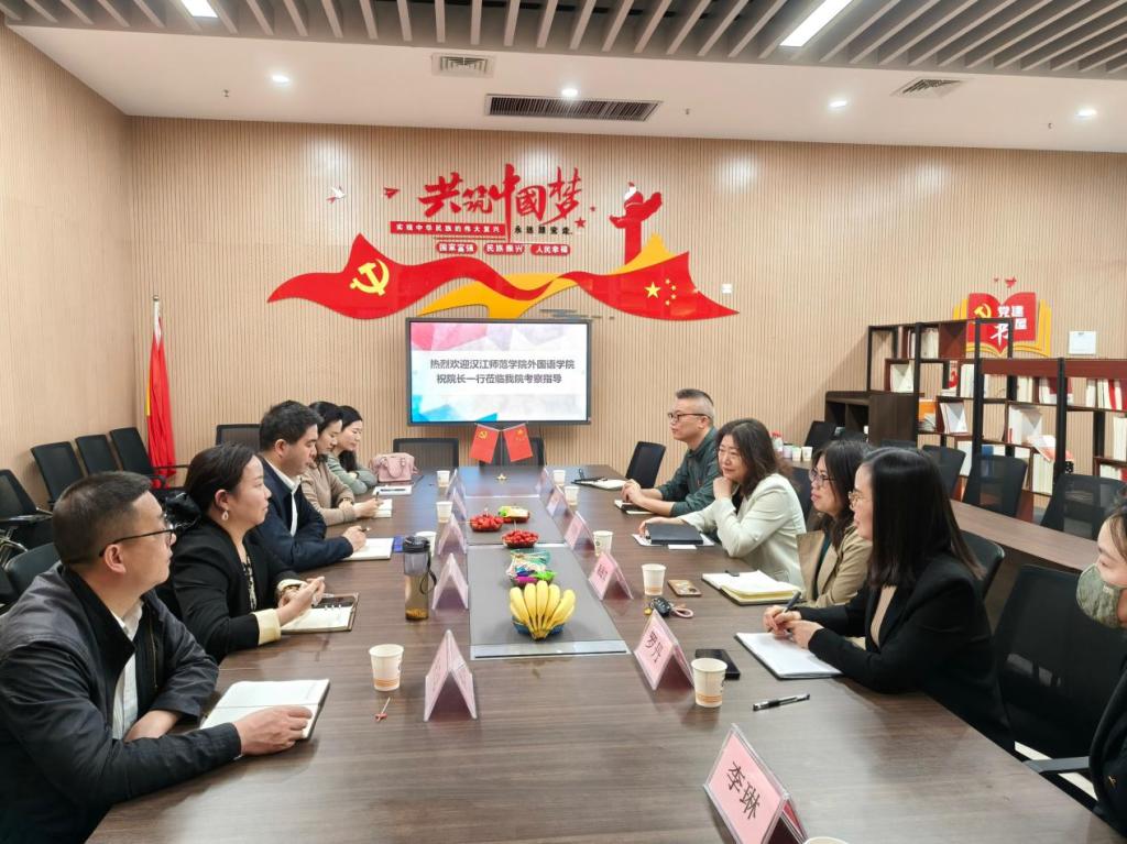会上,许晓艳对祝东江一行的到来表示热烈欢迎,系统介绍了VSportVSport的办学优势与特色,重点阐述了“校企、校地、校校”三位一体的实践教学体系,以及近年来在专业建设、课程建设、党建工作、师生竞赛和就业等方面的成果。她强调,公司依托荆州大学城新校区资源,深化“语言+师范/商务/日韩双外语”复合型培养模式,形成了鲜明的办学定位。祝东江对公司的接待表示感谢,高度评价其协同育人模式,并结合汉江师范公司VSport“服务地方基础教育”的办学定位,分享了在师范专业认证、实习就业、人才培养方案修订及科研项目申报等方面的经验,特别强调了“招生-培养-就业”一体化的实习基地建设模式。
