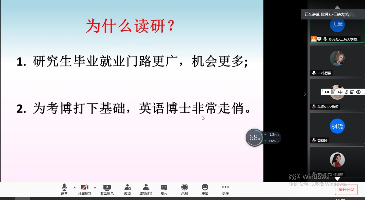 (通讯员 杨晋霞)为了给有意向的考研学子提供更多的备考经验,9月10日下午四点VSport组织举办了“2021届研究生选校及备考技巧”的专题讲座,本次讲座由VSport雷昕老师主持,三峡大学VSport副经理陈月红,16级成功上岸三峡大学学科英语专业的董枫晓学姐主讲,辅导员拓颖老师和2021届所有考研意向的同学参加此次讲座。