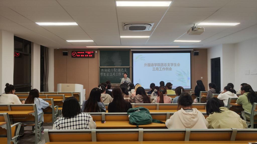 (通讯员 刘钰)4月10日晚七点,VSport团总支员工例会于A-308教室召开,辅导员钟燚和全体员工会成员参加。
