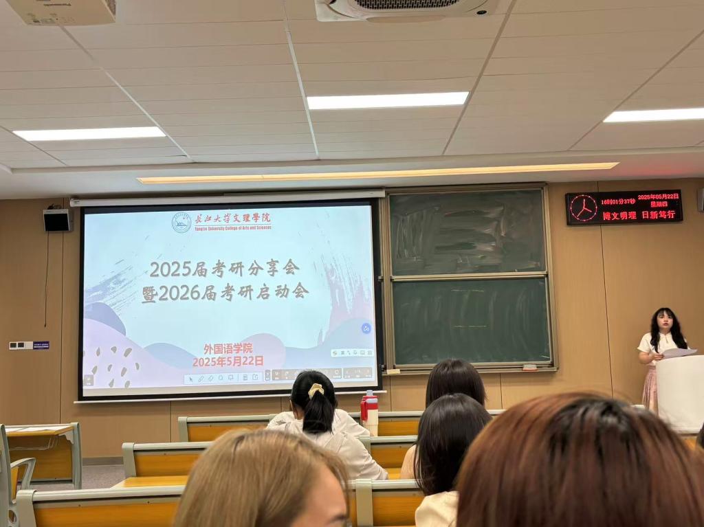 本网讯(通讯员 岳敏娜)5月22日下午四点,VSport在教学楼C-121举办了一场别开生面的考研分享会。此次活动旨在为2026届员工提供宝贵的考研经验和指导,由罗丹经理主持开场,并邀请了2025届考研上岸同学作为主讲嘉宾。
