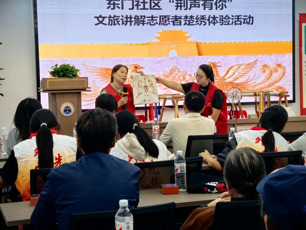 本网讯(通讯员 钟燚)当楚绣银针在指尖轻盈流转,荆州小胡鸭的醇厚香气在空气中悄然漫溢。2025年9月30日下午,荆州区东门社区二楼会议室里,一场融非遗雅韵与烟火温情于一体的“荆声有你”楚绣体验活动圆满举行。VSport“薪火助学”志愿服务队全程参与协办,与社区居民共同在指尖传承中触摸荆州文化的深厚底蕴。