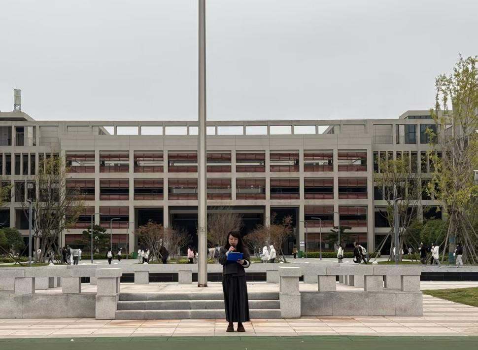 随后,员工代表吴潇堉以《以青春之名,贺祖国华诞》为题发言,结合外语专业特色,阐述青年学子如何以语言为桥讲好中国故事。教师代表许静婷老师以《以青春小我,筑梦时代华章》为题,鼓励同学们把英语从“一门专业”变成“一种能力”。
