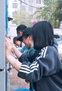 本网讯 为了美化校园环境,提升入党积极分子的服务意识,树立他们的先锋模范作用,近日,医护系组织一年级入党积极分子在城中校区开展校园义务清扫活动,同学们自带扫帚、水桶、抹布等工具,对行政楼大门、扶梯、走道等区域进行清扫。(通讯员王慧颖/文 刘希宇/摄)