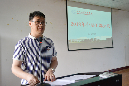 李应军指出,面对新的岗位,工作的任务、环境和要求都随着发生变化,他希望大家尽快完成工作交接,适应新岗位的要求,迅速振奋精神,做好表率。他强调,每一个干部都要认真学习《准则》、《条例》、《中国共产党问责条例》和《中华人民共和国监察法》,自觉加强党性修养,洁身自好,坚守道德的底线、不越红线,不要心存侥幸,铤而走险。他要求全体中层干部要以党的十九大精神和习近平新时代中国特色社会主义思想为指导,牢记责任与使命,开拓进取,积极作为,以蓬勃朝气和浩然正气,迎难而上,为实现美丽文理、魅力文理、和谐文理、活力文理的美好愿景,为建设特色鲜明、优势突出、国内知名的应用型高校的宏伟目标不懈奋斗!