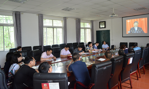 本网讯今天(5月25日)上午,党委书记李应军在行政楼会议室主持召开党委理论学习中心组集中学习(扩大)会,党委理论学习中心组全体成员、各党总支书记、直属党支部书记参加学习。会上,李应军传达了《中共湖北省宣传部关于全省各级党委(党组)理论学习中心组学习习近平总书记视察湖北重要讲话精神的通知》、省高等公司党建研究会第八次会员大会、省高校统战部长座谈会等文件会议精神,(记者 吴秀丽摄影报道)