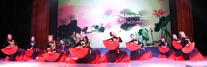 演出中,舞者将舞蹈与音乐融为一体,动作随着音乐的节奏时而优美,时而明快,“开”、“合”、“晃”、“绕”扇子的舞动和身体的律动结合起来。大家灵动地舞姿、轻盈地脚步,将柔中带刚的美展现地淋漓尽致,给人带来美的艺术享受,展示了中华民族的文化精神,赢得了全场观众的热烈掌声。