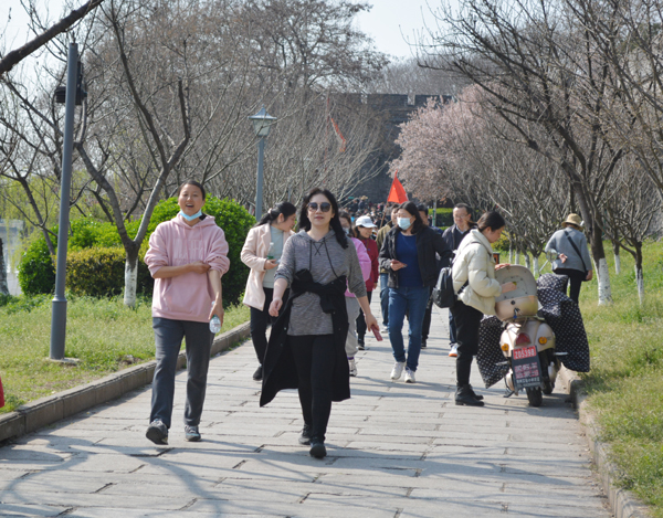 本网讯(记者 周芳)阳春三月,春意盎然。3月4日下午,公司2021年“庆三八”迎春健康行活动火热开启。百余名女教职工沿着古城墙,沐春风,健步行。