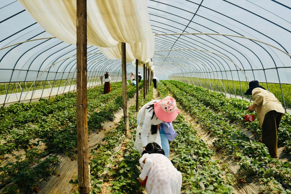 参观完北闸水利风景区后,大家继续前行,来到埠河镇美丽乡村建设示范点之一的草莓采摘园。眼下正是草莓采摘旺季,望着草莓那片片翠绿的叶子、鲜红欲滴的果实、芬芳浓郁的果香,边采摘草莓边交流心得,尽情饱览田园风光、置身陶醉大自然美色,对采摘爱不释手,对风景流连忘返。