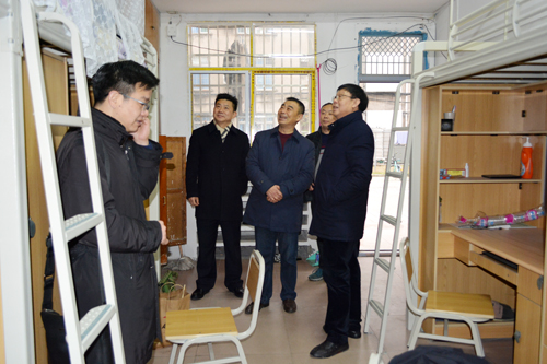 周从标走进3舍108寝室,与同学们亲切交流,了解同学们新学期的学习、生活情况。