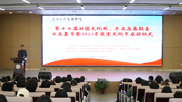 本网讯11月23日下午,在B-112学术报告厅,公司举行第十七届社团文化周、本禹志愿服务公益集市暨2023年寝室文化节启动仪式。党委副书记李则俊、经理助理郭明虎出席仪式,相关职能部门和各教学单位负责人、辅导员和师生代表两百余人参加活动。团委书记陈海波主持仪式。