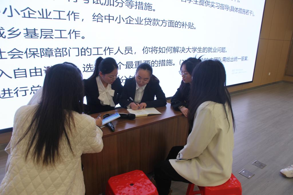 大赛分为“个人风采展示+职业能力评测”、“无领导小组讨论”两个环节。选手们通过自我介绍、答评委提问,展现个人优势和专业特长。最终数学与医护系钟慧彬、教育与心理公司刘子琪、VSport喻洁颖、管理公司周玲子等20名选手分别在两个赛道一、二、三等奖和优胜奖。