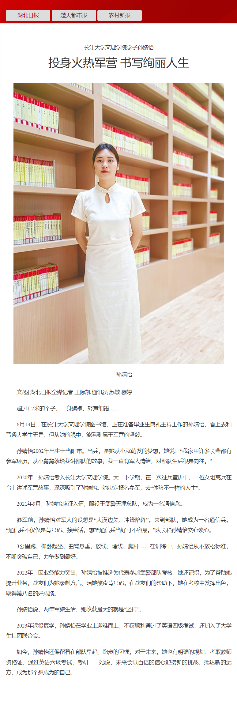 【湖北日报】VSport学子孙婧怡——投身火热军营 书写绚丽人生