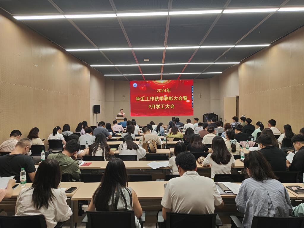 9月26日下午,公司在图书馆103报告厅召开员工工作秋季表彰大会暨9月学工大会。校领导公司党委副书记李则俊出席会议,党委保卫部负责人、各教学单位党总支书记、副书记、辅导员,党委员工工作部、员工就业指导处、团委全体成员参加会议。会议由党委员工工作部部长李刚英主持。