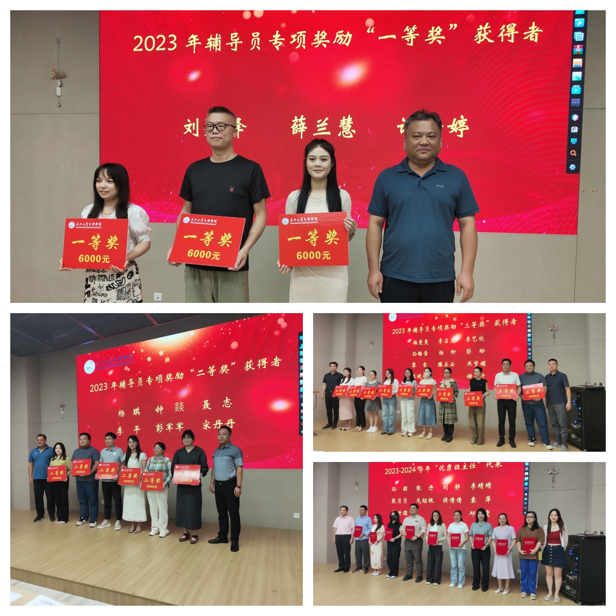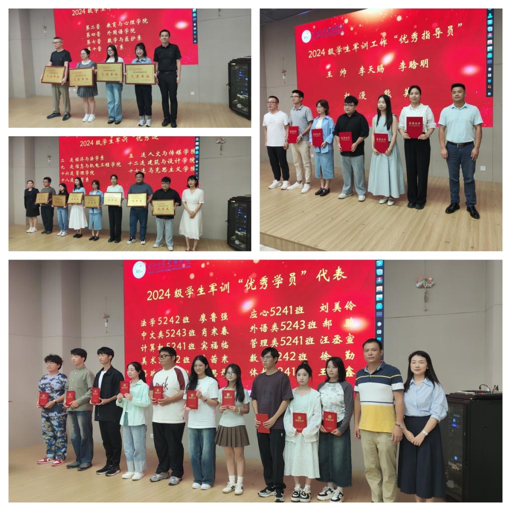 会上,对2024年军训工作先进集体和个人进行了表彰,还对2023年辅导员专项奖励优秀个人和上学年优秀班主任代表进行了奖励。
