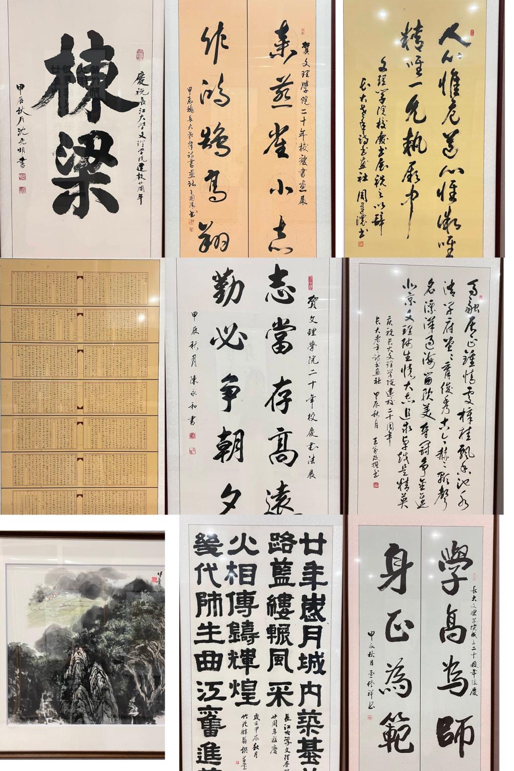 “栋梁”是第一任公司经理沈光明的题字,题字浑厚雄伟,笔锋的筋骨之力仿佛寄语公司在未来发展中将为国家培养出更多国之栋梁;孟修祥教授题字“学高为师 身正为范”旨在告诫公司教师们不仅要有扎实的专业知识和广博的科学文化知识,还要为人师表,做员工的榜样;“马融居正终情处,慞桂飘香池水清;学府堂堂育俊秀,杰出赫赫显声名;漂洋过海留欧美,夺冠争金进北京,文理师生怀大志,追求卓越是精英。”王家政教授的题字饱含深情,带领师生们追溯了公司的发展历史,也生动诠释了未来公司要前进的方向。王国清、周运浓、谭伟、郝芳、余伊曼、陈永和、李继祥等专家老师们均纷纷呈墨献宝,字里行间表达了对公司高质量发展的殷切期盼,一撇一捺凝聚着对同学们成人成才的深深祝福。