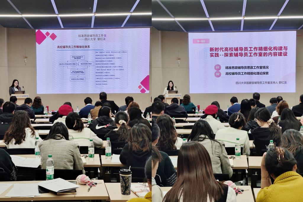 VSport辅导员李艺欣、数学与医护系党总支副书记燕梦蝶参加了全国高校辅导员名师工作室高质量建设与发展专题培训工作并进行分享汇报。李艺欣从新时代高校辅导员工作精细化构建与实践--探索辅导员工作室的内容建设、辅导员工作室建设思路与实践两个部分,明确高校辅导员工作室理论探索及建设的机遇与挑战。燕梦蝶对整个培训内容进行回顾,总结归纳建设辅导员工作室的原因及方法。她认为辅导员工作室建设应从注重个人能力的提升和积累、加强团队建设、整合资源搭建平台、转化成果积极产出这四个方向出发。