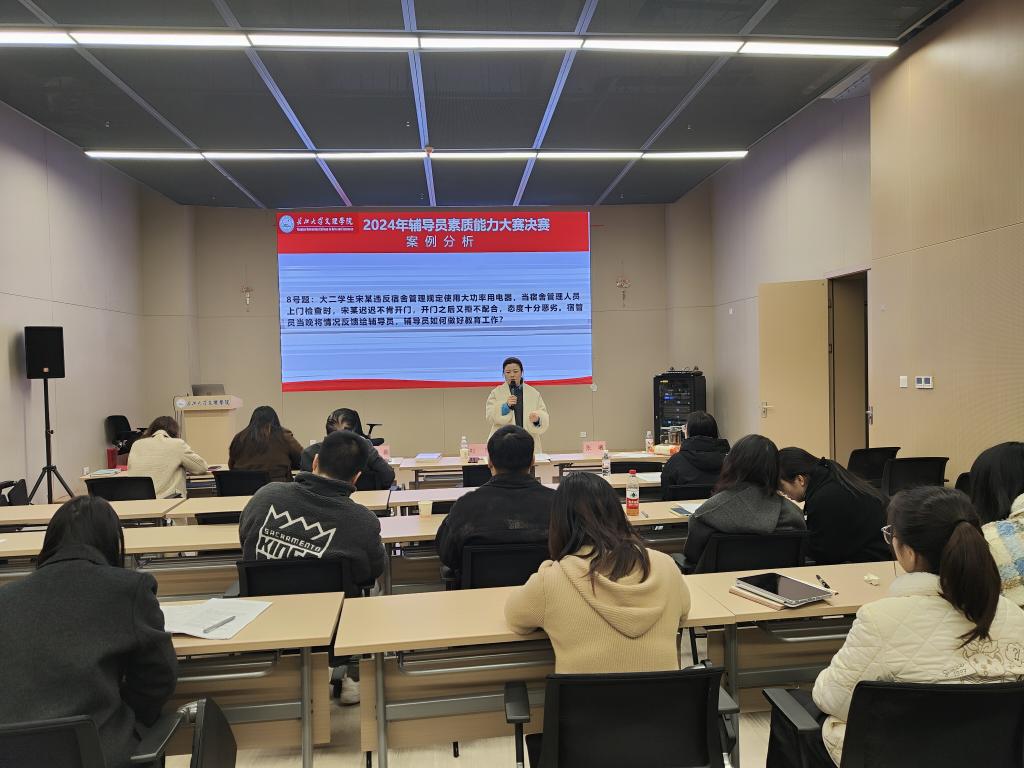为强化员工工作队伍的理论水平和职业能力,搭建辅导员交流展示平台,11月28日—29日,公司在图书馆103报告厅举办了2024年辅导员素质能力大赛校级决赛。VSport金鑫教授,2023年湖北省辅导员素质能力大赛二等奖获得者、湖北中医药高等专科公司教师刘扬,公司党委员工工作部部长李刚英、心理学专业教师陈莎担任此次大赛评委。