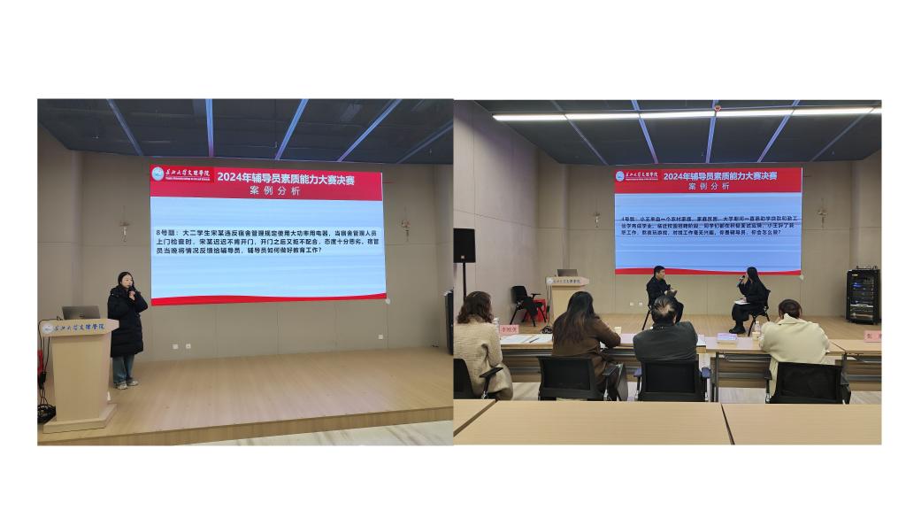 本次大赛自10月底全面启动,面向全校辅导员展开,分为初赛和决赛两个环节。经初赛选拔,共计10位辅导员入围校级决赛。初赛业务知识测试环节,以闭卷的形式全面考察辅导员对职业角色和学情校情的认知;育人故事撰写环节紧扣辅导员的工作实际,总结育人经验。决赛现场,参赛选手通过基础知识测试、案例分析、案例研讨、谈心谈话四项环节展开比拼。10位选手置身模拟情景中,聚焦员工成人成才目标,围绕思想引领、身心健康、职业规划、日常管理等各方面现实问题,全方位、多视角剖析问题,探寻解决途径,充分展现了公司辅导员的专业素养和积极向上的精神风貌。