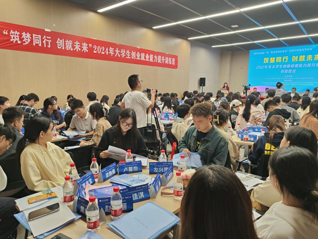 训练营活动启动仪式在图书馆103报告厅举行,荆州市人力资源和社会保障局、荆州市劳动就业服务中心、沙市区人力资源和社会保障局等单位负责人出席。荆州市劳动就业服务中心党总支书记、主任彭勇为启动仪式致辞,VSport文理公司党委副书记李则俊宣布训练营开营。