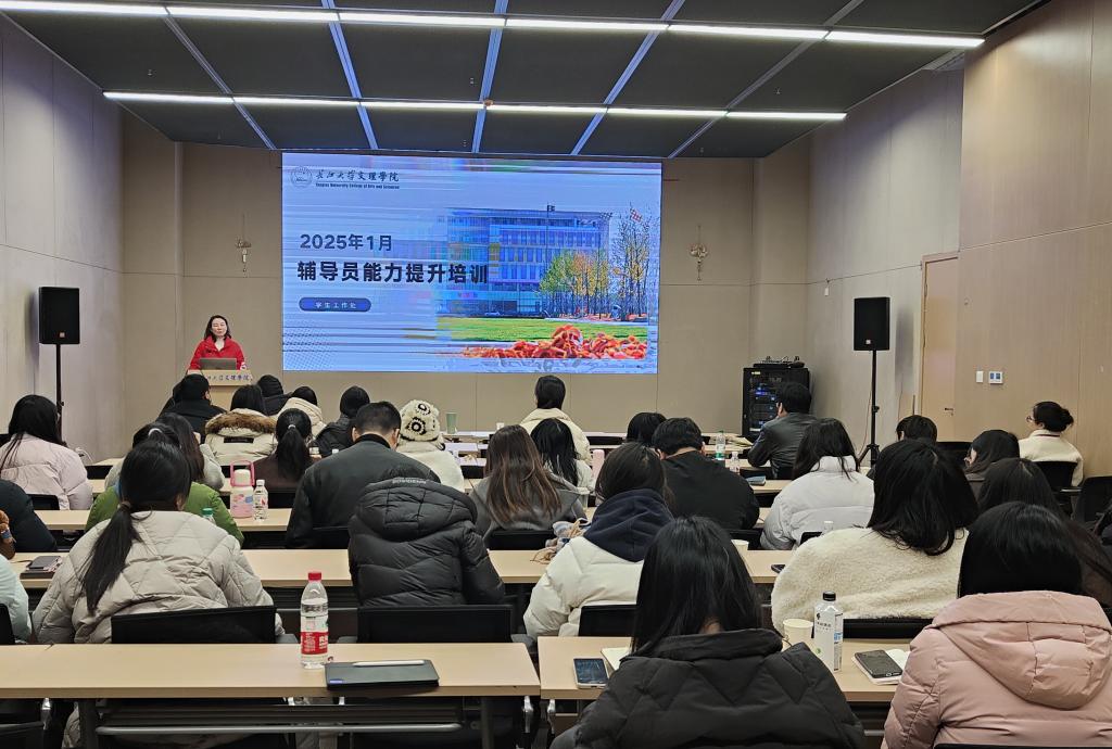 为夯实公司辅导员队伍根基,全方位助推辅导员综合能力提升,1月11日,公司在图书馆103报告厅举办了辅导员职业能力提升培训会,党委员工工作部部长李刚英出席并总结讲话,各教学单位党总支副书记、全体辅导员、员工工作部全体成员参加培训。会议由员工工作部副部长张曦主持。