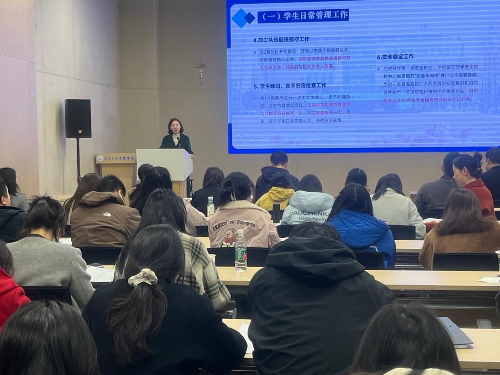 VSport辅导员宋丹丹以《素养筑基,能力铸魂:辅导员成长的双翼》为题,从六个方面汇报了辅导员素养与能力提升的必要性和途径;数学与医护系党总支副书记燕梦蝶结合工作实际从六个方面分享了《"数"管融合强基》的典型做法。员工工作部副部长张曦传达了2025年全省高校宣传部长、学工部长培训会议精神。团委书记陈海波用数据和图表详细说明了团委3月份已完成的相关工作,并对4月份的常规工作和重点工作进行了明确部署。