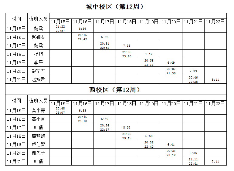 2021-2022学年第1学期第12周学工人员寝室值班通报