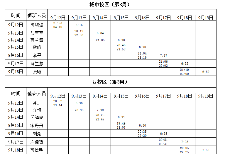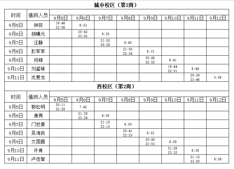 2022-2023学年第1学期第2-3周学工人员寝室值班通报