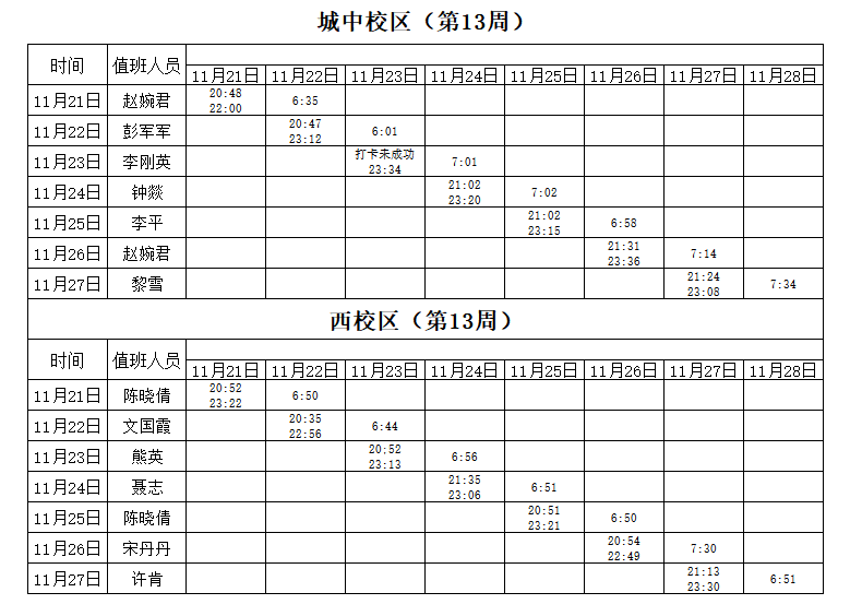 2022-2023学年第1学期第13周学工人员寝室值班通报