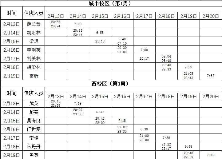 2022-2023学年第2学期第1-2周学工人员寝室值班通报