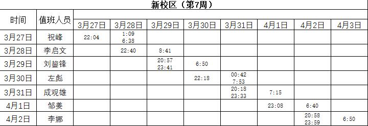 2022-2023学年第2学期第6-7周学工人员寝室值班通报