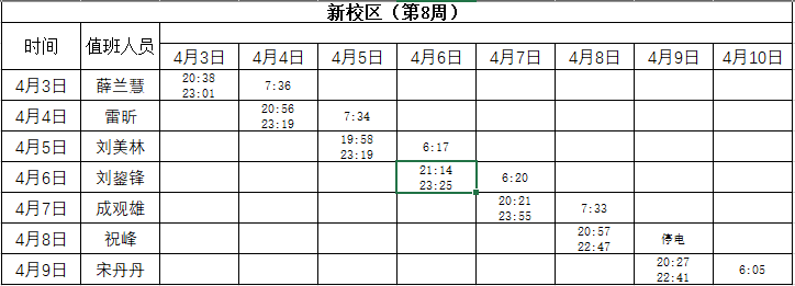 2022-2023学年第二学期第8周学工人员寝室值班通报
