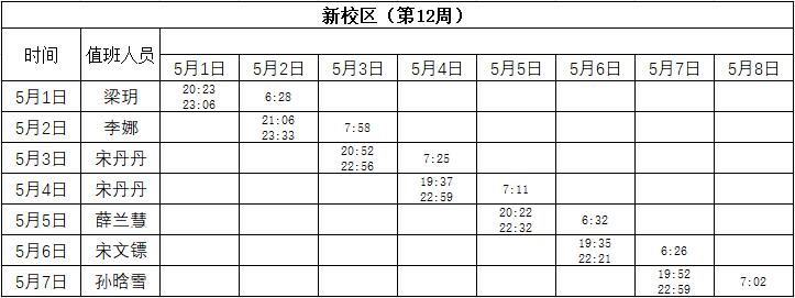 2022-2023学年第二学期第11-12周学工人员寝室值班通报