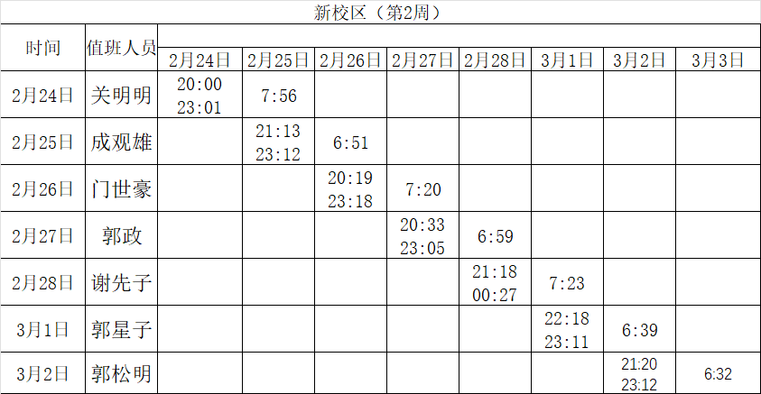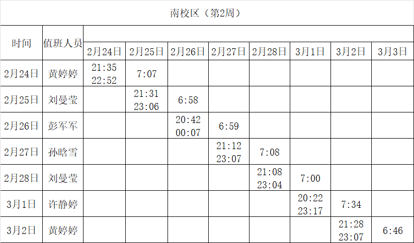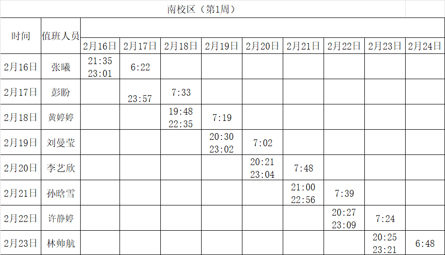 2024-2025学年第二学期第1-2周学工人员寝室值班通报