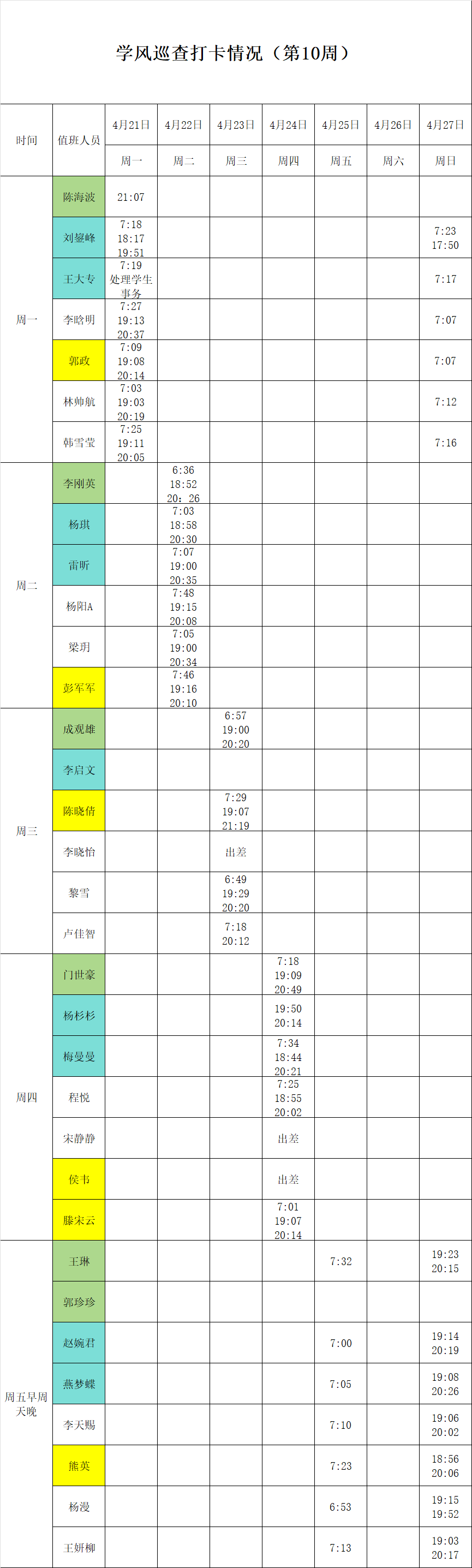 2024-2025学年第二学期第9-10周学风巡查打卡情况公示