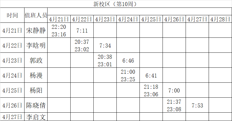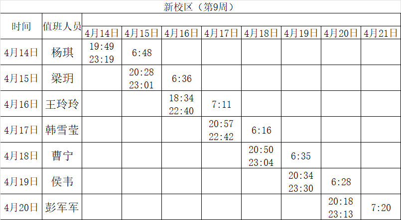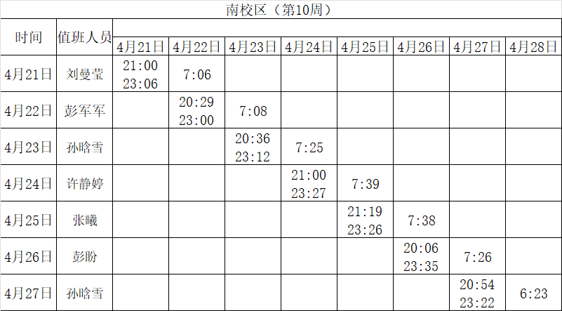 2024-2025学年第二学期第9-10周学工人员寝室值班通报
