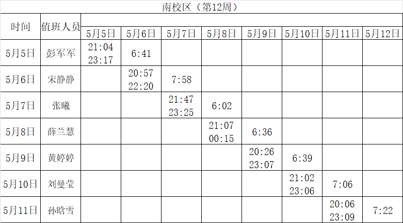 2024-2025学年第二学期第11-12周学工人员寝室值班通报