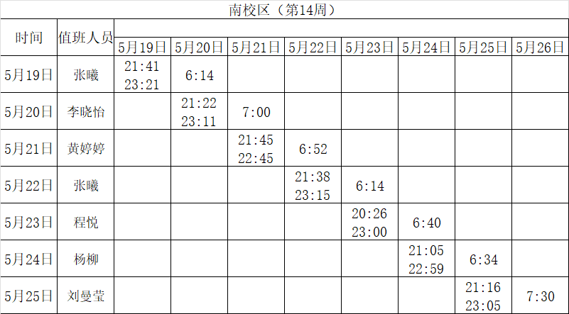 2024-2025学年第二学期第13-14周学工人员寝室值班通报